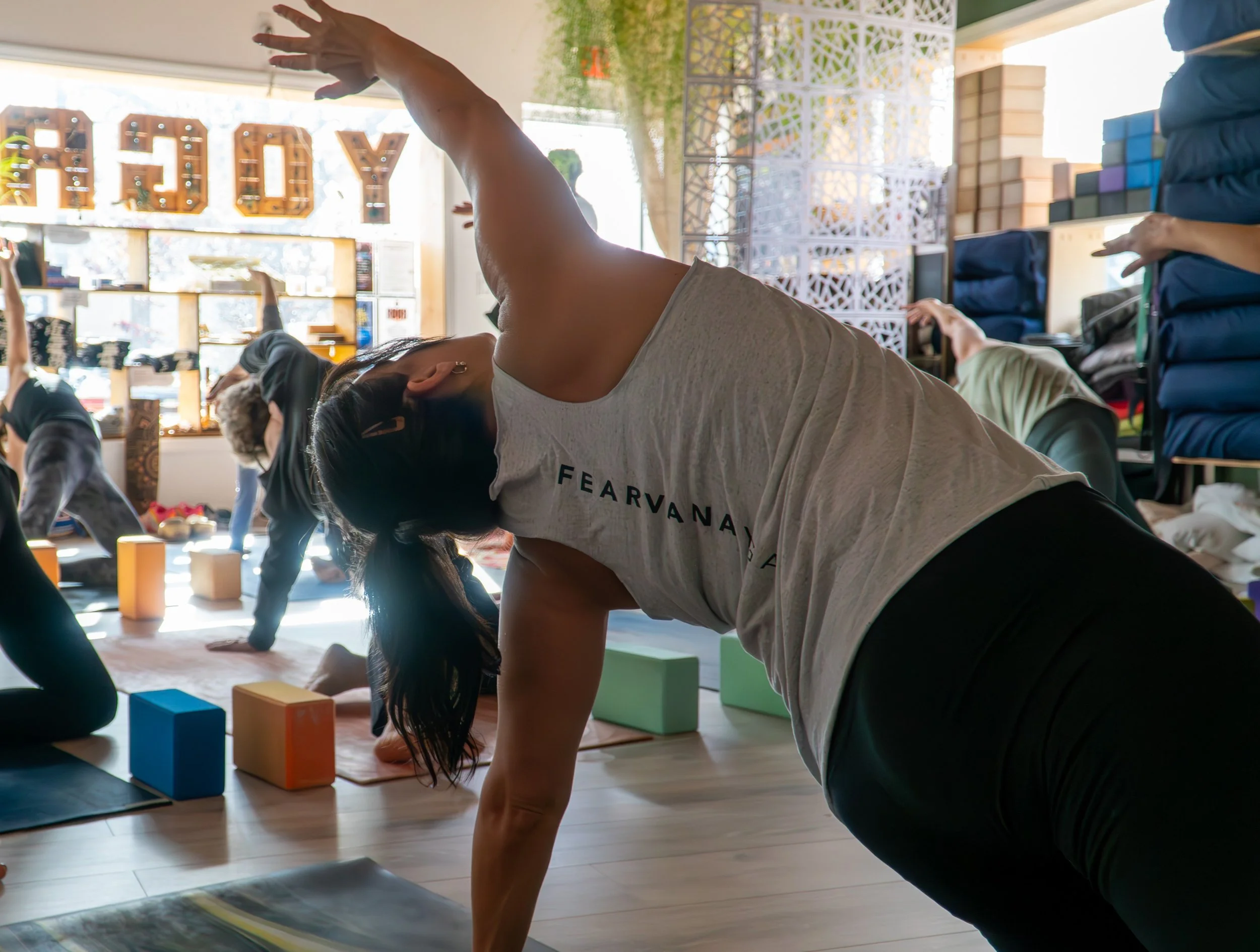 At Fearvana Yoga, we help courageous, independent, capable humans calm their minds, strengthen their bodies, and fortify their spirits, so they can chase their dreams and live big, bold lives fearlessly.